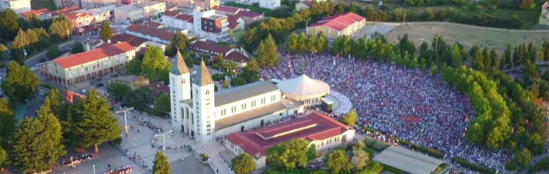 El altar exterior construído en 1989 y el espacio de oración que lo rodea (con capacidad de 5000 alrededor asientos), es el lugar donde se concentran durante el verano y en ocasión de ciertas grandes festividades, varias decenas de miles de peregrinos que convergen en Medjugorje. Los espacio de oración alrededor de la Iglesia Parroquial son: Capilla de Adoración La Capilla de Adoración fue construida en 1991, para ofrecer un lugar para la adoración silenciosa de Jesús en el Santo Sacramento del altar a los peregrinos. En la actualidad, por falta de lugares de oración en el Santuario, se celebran allí todas las mañanas misas para diversos grupos lingüísticos. Por la tarde, la capilla permanece abierta para la oración personal. En el año 2000, fueron colocados relieves de cinco mártires de la fe, sacerdotes nativos de la parroquia que fueron muertos por los comunistas a fines de la 2da. Guerra Mundial. Estatua de la Reina de la Paz Una estatua en mármol de la Reina de la Paz (obra de Dino Felici de Italia), que se convirtió en uno de los símbolos del Santuario, fue erigida en 1987 en la explanada de la Iglesia. Confesionarios Gracias a las apariciones de la Virgen, Medjugorje se convirtió en un lugar de reconciliación, reconciliación que los peregrinos pueden experimentar muy particularmente en el sacramento de la Confesión. Es la razón por la cual, cerca de la Iglesia, encontrará 25 confesionarios (construidos en 1990 y restaurados en 2001) donde los fieles tienen cotidianamente la ocasión de experimentar el encuentro con el perdón de Dios. Estatua de San Leopoldo Bogdan Mandic Una estatua de bronce de san Leopoldo Bogdan Mandic, santo patrono de los confesores, canonizado el 16 de octubre de 1983 (obra de Carmelo Puzzolo de Italia), fue ubicada en 1998 cerca de los confesionarios exteriores. Espacio de oración alrededor de la Cruz de Madera Un espacio para la oración silenciosa, donde los peregrinos pueden igualmente encender sus velas, ha sido previsto alrededor de la cruz de madera, en el lado noroeste de la iglesia. Espacio para descanso de los peregrinos Un espacio cubierto, destinado al descanso de los peregrinos, fue dispuesto en el año 2000. Detrás del mismo se encuentran instalaciones sanitarias a disposición. Espacio de oración alrededor de la estatua del Cristo Resucitado La estatua de bronce del Salvador Resucitado (obra del escultor esloveno Andrej Ajdic) fue erigida para Pascua de 1998 al sudoeste de la iglesia, al borde del camino que conduce al cementerio. Un espacio para la oración personal o grupal, o para el rezo del Vía Crucis para quienes no pueden subir al Krizevac, fue dispuesto alrededor de la estatua para Pascua de 2002. Sala de encuentros y cuadro de la Reina de la Paz Los encuentros de oración con los peregrinos en la parroquia hicieron necesaria la construcción de una sala de conferencias, destinada a los encuentros de oración y a los seminarios internacionales. Fue construida en 1998 y tiene una capacidad de 800 asientos. Podrá observar allí el cuadro de la Reina de la Paz (pintura al óleo del Prof. Carmelo Puzzolo). Cementerio Kovacica En el cementerio de Kovacica se encuentra la tumba donde están enterrados el Padre Slavko Barbaric y el Padre Krizan Galic (este último, siendo cura párroco, fue asesinado por partidarios del régimen, en la casa parroquial).
